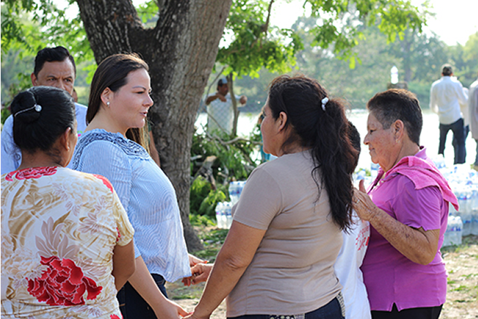 Alma Laura Hernández Amparán, llevó apoyos alimentarios y junto con personal del organismo que preside, entregó agua y medicamentos al ofrecer atenciones médicas a las familias que resultaron afectados por la tormenta, Cues de Palmas Altas, Mata del Corral y Torno Largo.