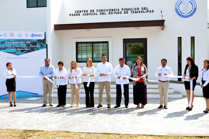 El evento fue presidido por el gobernador del Estado, Lic. Francisco García Cabeza de Vaca, y el magistrado presidente del Supremo Tribunal de Justicia, Horacio Ortiz Renán, quien informó que este centro es el quinto edificio que el poder judicial pone al servicio de las familias tamaulipecas que transitan en sus procesos de divorcio.