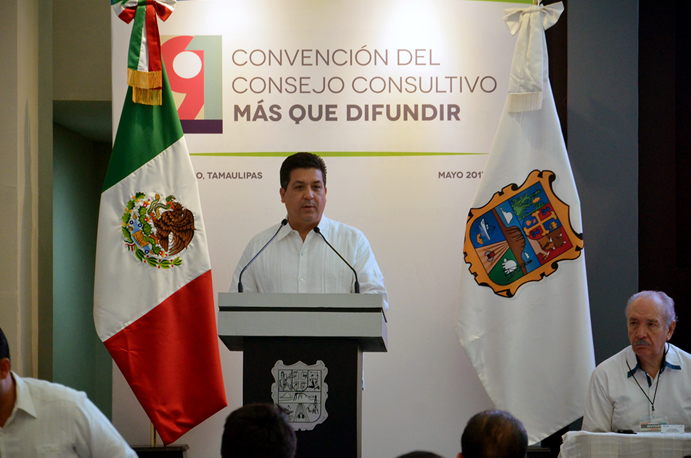 En su intervención, el jefe del Ejecutivo Estatal señaló que recibir a quienes a través de la industria de la radio y televisión contribuyen al desarrollo nacional es un privilegio que les agradecemos, donde su confianza en el Tiempo de Todos que vive Tamaulipas nos motiva para continuar adelante con nuestro proyecto para la reconstrucción de las instituciones, dirigido a recobrar la confianza de la gente, reestablecer el orden y recuperar el estado de Derecho.