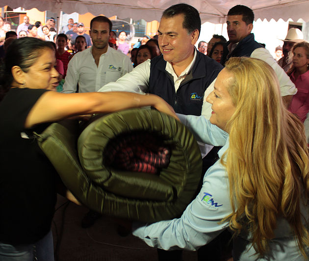 *La alcaldesa Alma Laura Amparán Cruz, junto con el secretario estatal de Bienestar Social, Gerardo Peña Flores, distribuyó colchonetas y cobijas a residentes afectados de los sectores Santa Elena y José María Morelos.