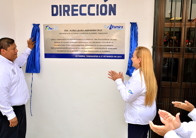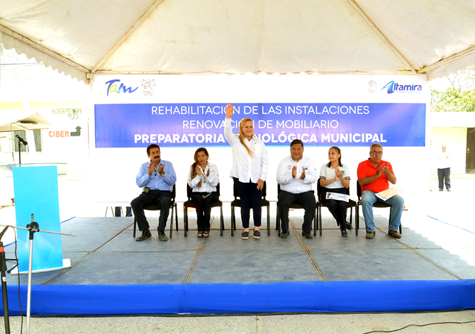 *Inaugura alcaldesa restauración integral de la Preparatoria Tecnológica Municipal de Altamira, donde se aplicó una inversión de más de 1 millón 290 mil pesos.