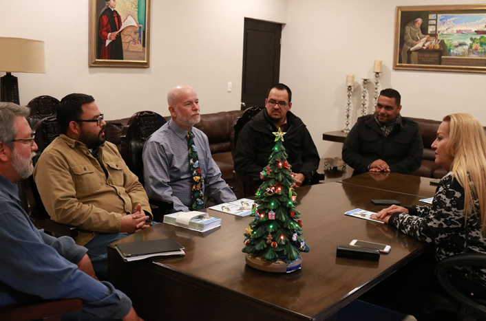 La alcaldesa Alma Laura Amparán Cruz recibió en su despacho de la Presidencia Municipal al vicepresidente del Zoológico de San Antonio, Mr. Alan Kardon, con quien dialogó sobre ese material bibliográfico, así como de la gran diversidad de especies que proliferan en los sistemas lagunarios y áreas rurales de Altamira.