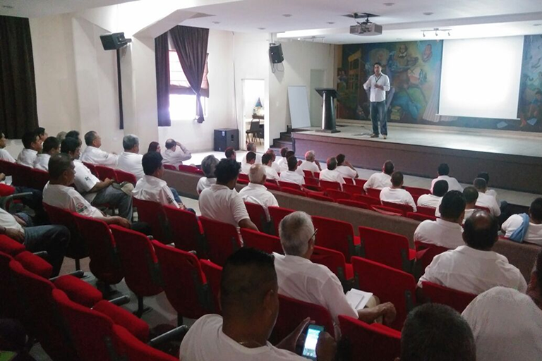 Alrededor de 180 operadores tomaron parte de la plática “Desarrollo de Valores y Calidad en el Servicio’’ que ofreció la delegada de Transporte Público en la Zona Sur, Doris Hernández Ochoa, en el salón de actos “Juan Macías Castillo” de la biblioteca municipal.