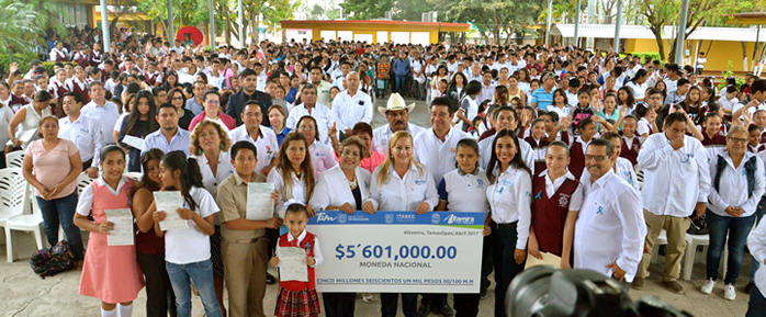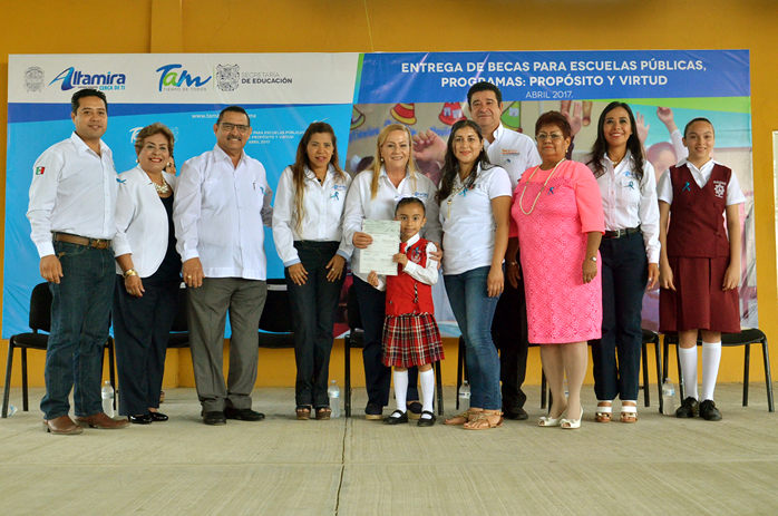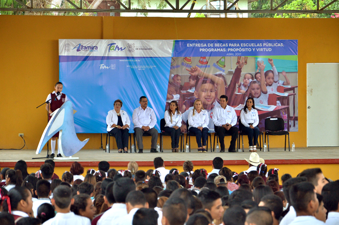 Al encabezar la ceremonia de segunda entrega de becas a alumnos de escuelas públicas, ciclo escolar 2016-2017, efectuada en la Secundaria Técnica Número 55 “Expropiación Petrolera’’, donde se destinaron 5 millones 601 mil pesos en estímulos educativos para estudiantes de educación especial, primaria, secundaria (generales, técnicas y telesecundarias) y nivel medio superior, Amparán Cruz indicó que esos apoyos simbolizan un estímulo para los niños y jóvenes de Altamira, pues los programas Propósito y Virtud llegan a los alumnos de distintos planteles públicos tamaulipecos.