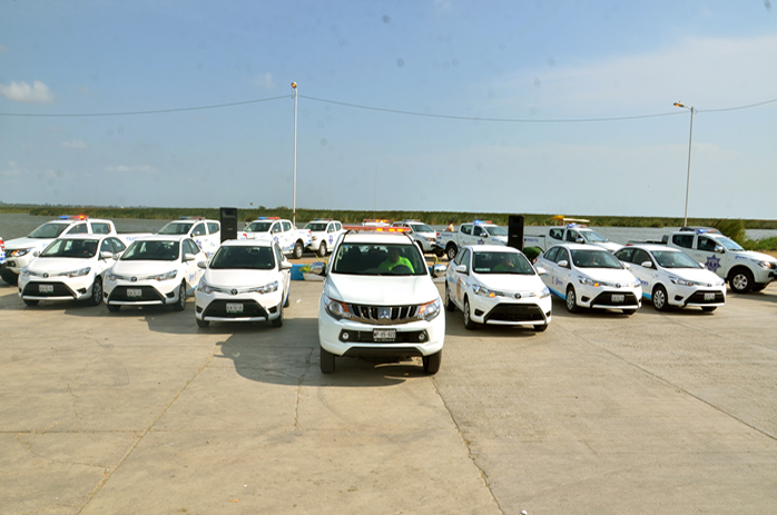 Se proporcionaron camionetas tipo pick up a las direcciones de Tránsito y Protección Civil y dos lanchas con motor fuera de borda para esta última dependencia, además de automóviles sedan para las direcciones de Protección Civil, Obras Públicas, Desarrollo Económico, Ecología, Tesorería y Contraloría.