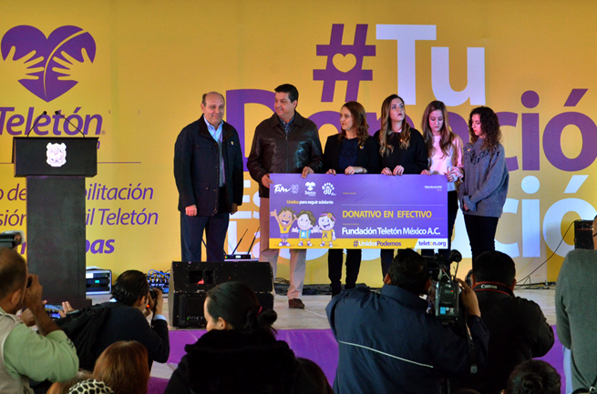 “Con gran orgullo y satisfacción, mi esposa Mariana, en compañía de mis hijas Lourdes, Sofía y Mariana y un servidor, hacemos entrega de la donación de los tamaulipecos al Teleton. Esto es una muestra de solidaridad que hará posible que este gran proyecto siga siendo ejemplo y modelo de atención especializada y de gran ayuda para nuestros niños y niñas con capacidades diferentes, cáncer y autismo’’, mencionó.
