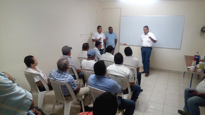 *Se reúnen directores de Tránsito y Vialidad y de Transporte, Leonardo Blanco y Gualberto Garza, con delegados de las diferentes rutas que prestan servicio en el municipio.