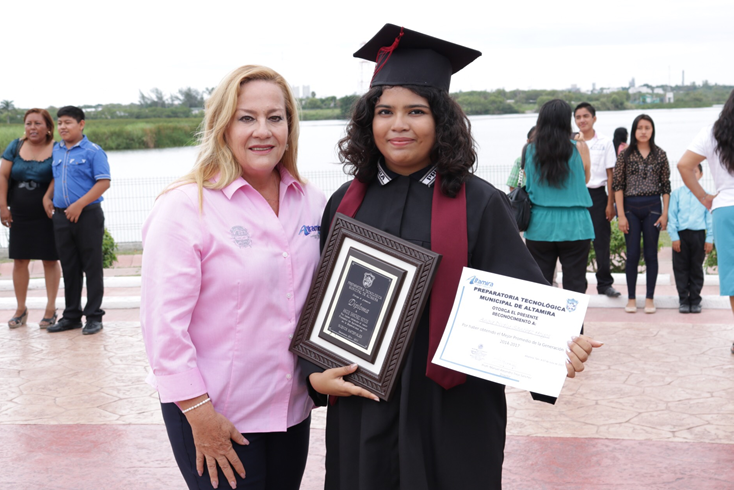 Apoyando al cien por ciento la Educación y trabajando conjuntamente con el gobernador Francisco García Cabeza de Vaca, el Gobierno de Altamira genera espacios propicios para que niños y jóvenes tengan acceso a una educación de excelencia que permitan el forjamiento de los líderes del mañana, señaló la alcaldesa Alma Laura Amparán Cruz durante la ceremonia de graduación de la generación 2014-2017 de la Preparatoria Municipal de Altamira, de la que fue madrina.