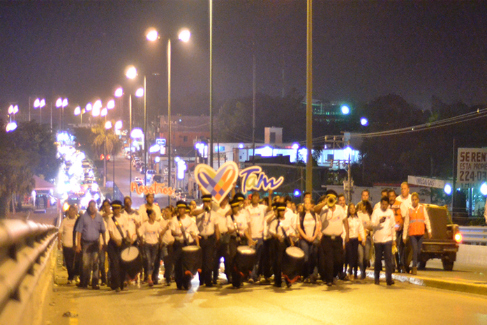 La marcha, desarrollada en el Día Internacional de la Eliminación de la Violencia contra la Mujer, dio inicio en el Bulevar Allende, a la altura del paso a desnivel, para terminar en el Palacio Municipal que estaba iluminado con los colores de esta campaña: azul, naranja y verde, asistiendo contingentes del Ayuntamiento de Altamira, Sistema DIF, CAM, Centro Regional IMT, direcciones de Agricultura, Turismo, Bienestar Social, Servicios Públicos y Salud, Tesorería, Asociación Municipal de Padres de Familia, PPM, Sindicato de Terrestres, Zona Miramar, comunidad gay y midnigth club.