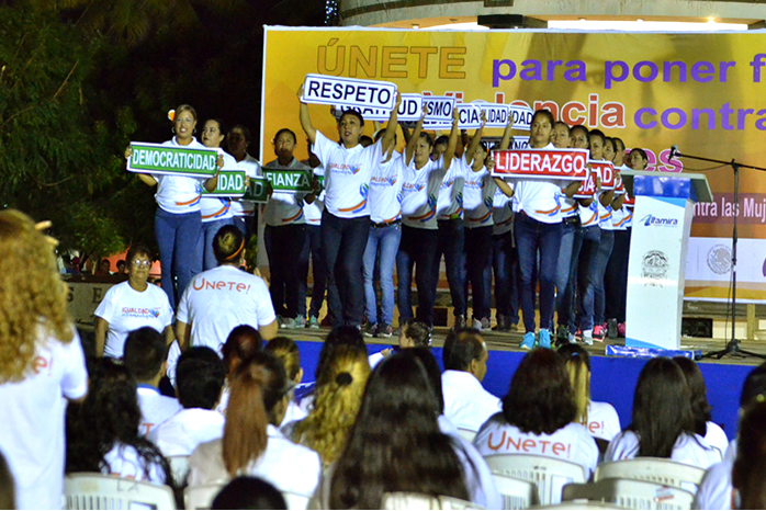 En la plaza Constitución se realizó un programa alusivo a la campaña estatal “Igualdad en Tamaulipas’’, teniendo como tema de inicio la conmemoración del Día Internacional de la Eliminación de la Violencia contra la Mujer.