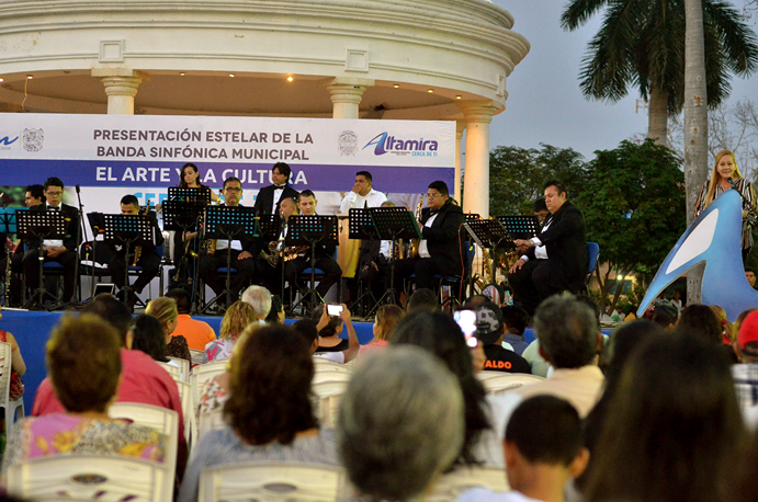 “Y precisamente -dijo- para beneplácito y el fortalecimiento del arte y la cultura, hoy disfrutamos del concierto de gala de la Banda Sinfónica Municipal de Altamira, que evoluciona propositivamente con el objetivo de acercar cada vez más las expresiones artísticas y musicales a todos los rincones de esta tierra de gente buena, noble y trabajadora, que además formará a las generaciones del presente, en el camino musical del mañana’’.