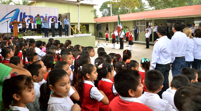 Destacó que los alumnos de esta institución educativa han sobresalido en la participación de distintos concursos y demostraciones municipales en cuerda individual y por pareja, representando además el plantel escolar un gran apoyo a la sociedad altamirense, pues sirve como albergue en la temporada de lluvias e inundaciones; “como ejemplo de tan noble acción, pudimos constatar hace unos meses de su solidaridad al brindar alimentos y funcionar como comedor comunitario a quienes más lo necesitaron’’.