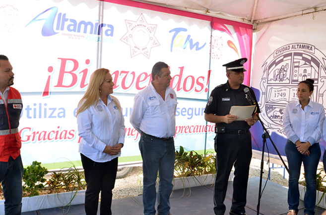Estuvieron presentes en la puesta en marcha de este dispositivo de seguridad, el director de Tránsito y Vialidad, José Leonardo Blanco Martínez; el director de Protección Civil, César Vázquez Jáuregui; el representante de la Cruz Roja, delegación Altamira, Carlos Béjar, así como integrantes del cabildo de Altamira y directores de área. |