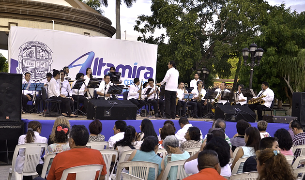 Autoridades municipales y el público asistente disfrutaron de un ameno evento artístico-musical que contó con la intervención de la Banda Municipal de Altamira que interpretó melodías del hijo predilecto de Altamira como "Fallaste corazón'', “Qué manera de perder’’, "Arrieros somos'', "El mil amores'', entre otras.