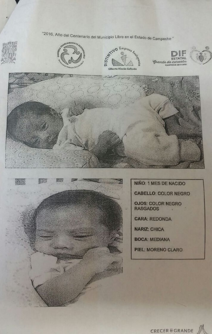 A petición de la Procuraduría de Protección de Niñas, Niños y Adolescentes del DIF Estatal de Campeche, el Sistema DIF Altamira solicita la colaboración de la comunidad altamirense, así como de esta zona conurbada y de la región para localizar a los familiares del bebé que aparece en la fotografía, el cual fue encontrado en estado de abandonado en Ciudad del Carmen, Campeche, en octubre del 2016.