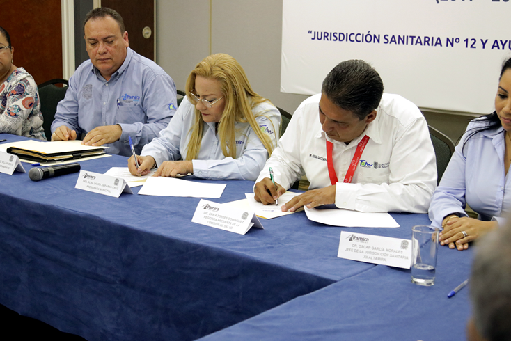 En la firma del convenio asistieron el secretario del Ayuntamiento, Israel Hernández Villafuerte; el director de Salud, Abel Rojas Cortina; la regidora presidenta de la comisión de Salud, Erika Torres Domínguez, y la síndica segunda de la comuna, Marisela Cervantes Cepeda, integrando el Comité Municipal de Salud funcionarios de las diferentes áreas del Gobierno de Altamira y del Sector Salud.