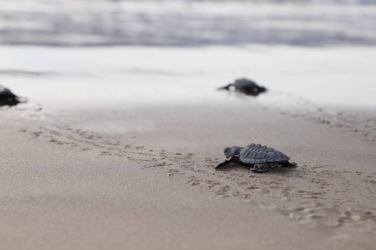 Liberan más de 400 crías de tortuga Lora en Playa Tesoro
